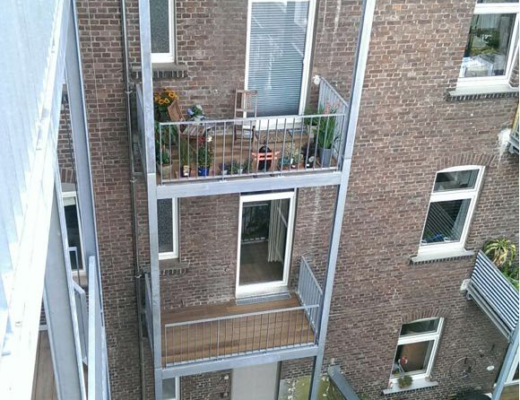 Abbruch alter Betonbalkone / Stemmen von Mauerwerkstaschen / Fundament-Erstellung / Ausführung von Durchbrüchen für Terrassentüren / Lieferung und Montage von Terrassentüren / Anbringung der Stahlbalkone / Lieferung und Montage des Holzbelages / Herstellung und Montage von individuellen Geländern aus Stahl und Edelstahl sowie die individuellen Füllungen aus Edelstahl, in verzinkter Ausführung, mit Lochblech, Draht-Seilen, Glas- Trespaplatten oder in pulverbeschichteter Ausführung.